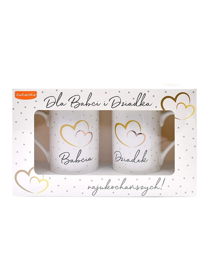 Komplet dwóch kubków porcelanowych dla Babci i Dziadka może być super prezentem dla Babci i Dziadka nie tylko w dniu ich święta. Na kubku dla Babci jest napis "Babcia", na kubku dla Dziadka "Dziadek". Kubki zapakowane są w ładny kartonik, na którym znajduje się napis "Dla Babci i Dziadka najukochańszych!".