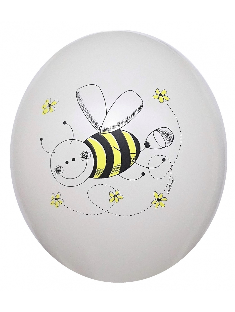 Balony z nadrukiem to idealna dekoracja na przyjęcie organizowane zarówno w domu jak i w innym miejscu. Balony foliowe są również doskonałym tłem do robienia zdjęć zarówno w zaciszu domu jak i w plenerze. Balon gumowy w kolorze białym z namalowaną z dwóch stron dużą pszczółką. Balon można napełnić powietrzem lub helem. Napełniony helem będzie się ładnie unosił. Kompozycja z kilkunastu takich balonów będzie ładna dekoracją. W naszej ofercie są również obciążniki do balonów. Sprzedajemy balony renomowanych i sprawdzonych firm.