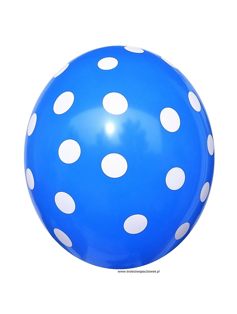 Balon w kolorze ciemno niebieskim z nadrukiem dużych białych kropek. Balon może być pojedynczym balonem bądź może być elementem kompozycji balonów z helem. Balon można napełnić powietrzem lub helem. Napełniony helem będzie się ładnie unosił. W naszej ofercie są również obciążniki do balonów. Sprzedajemy balony renomowanych i sprawdzonych firm.