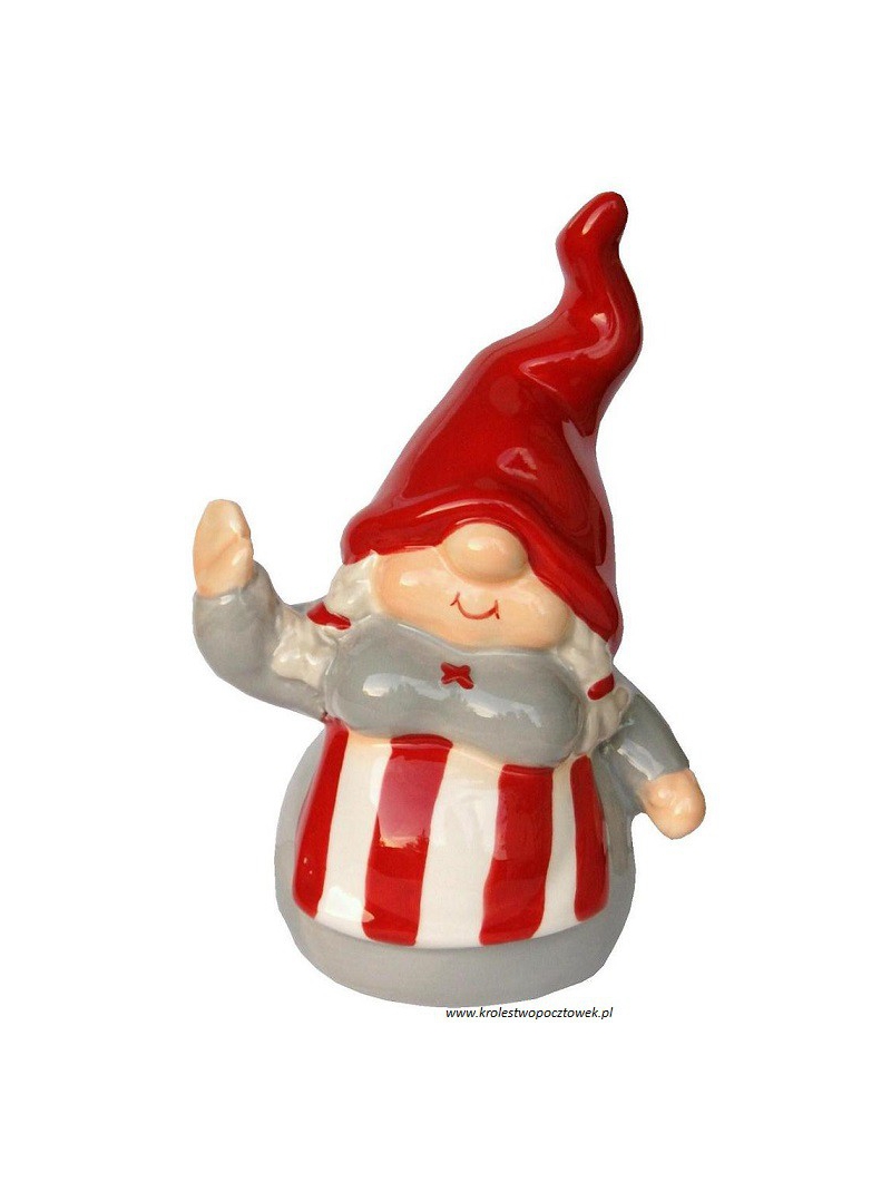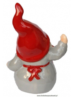 Kolorowa figurka Skrzata do postawienia. Taki Skrzat to dekoracja, która umieszczona w dowolnym miejscu na regale, komodzie itp, stworzą świąteczną atmosferę w każdym pomieszczeniu a jednocześnie umilą świąteczny czas. Skrzat wykonany z ceramiki w kolorach czerwonym, szary, i białym.