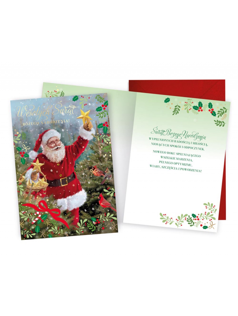 Boże Narodzenie to czas wyjątkowy, który spędzamy w rodzinnej atmosferze. To czas pięknych gestów życzliwości, miłości i pamięci. Jeżeli nie można złożyć życzeń osobiście, warto wysłać piękną kartę z życzeniami na ten szczególny czas. Składany karnet z napisanymi życzeniami z okazji Bożego Narodzenia i Nowego Roku.
