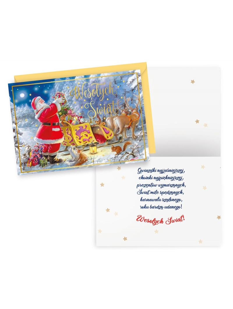 Boże Narodzenie to czas wyjątkowy, który spędzamy w rodzinnej atmosferze. To czas pięknych gestów życzliwości, miłości i pamięci. Jeżeli nie można wyrazić tych uczuć osobiście, warto wysłać piękną kartę z życzeniami na ten szczególny czas. Składany karnet z napisanymi życzeniami z okazji Bożego Narodzenia.