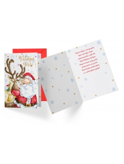 Boże Narodzenie to czas wyjątkowy, który spędzamy w rodzinnej atmosferze. To czas pięknych gestów życzliwości, miłości i pamięci. Jeżeli nie można wyrazić tych uczuć inaczej, warto wysłać piękną kartę z życzeniami na ten szczególny czas. Składany karnet z napisanymi życzeniami z okazji Bożego Narodzenia i Nowego Roku.