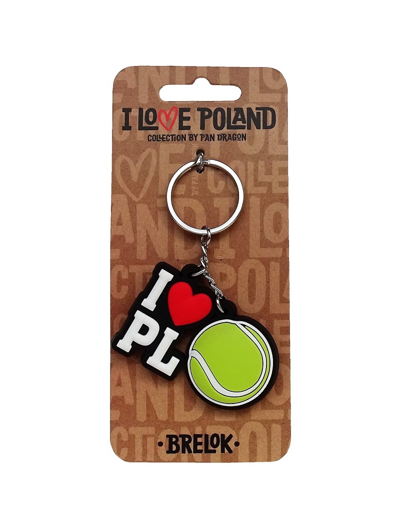 Breloczek do kluczy - z zawieszkami w kształcie piłeczki do tenisa ziemnego i serduszkiem I LOVE POLAND. Breloczek wykonany jest z miękkiego tworzywa i świetnie nadaje się do kluczyków samochodowych. Taki brelok nie porysuje deski rozdzielczej w samochodzie. Breloczek będzie również super prezentem na każdą okazję, dla małego czy dużego kibica tenisa.