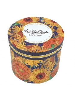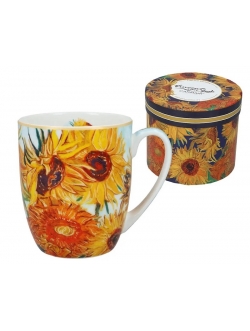 Klasyczny, duży kubek z wygodnym uchem i pięknym wzorem czyli odrobina luksusu na co dzień. Kubek z serii prezentowej idealny do podarowania na prezent. Na kubku przedstawiono twórczość Vincenta van Gogh'a - "Słoneczniki". Taki kubek to trafiony prezent dla nawet najbardziej wybrednego znawcy sztuki lub można go wręczyć komuś obdarzonemu wysokim poczuciem estetyki. Kubek zapakowany w efektowne i wytrzymałe okrągłe pudełko z dedykowanym wzorem.