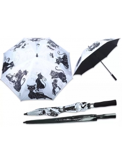 Elegancki, duży, automatycznie otwierany parasol to najlepszy kompan spacerów w czasie deszczu. Wyjątkowy parasol z kolekcji "Koci Świat" to praktyczny gadżet dla miłośników kotów. Biała parasolka z namalowanymi czarnymi kotami. Dekoracja znajduje się na wierzchu parasola, spód parasola jest czarny. Do parasolki dołączony jest czarny pokrowiec. Ten parasol umili każde chwile spędzone w deszczu.