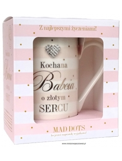 Która Babcia nie lubi zaczynać dnia od porannej, aromatycznej kawy lub herbaty w eleganckim, ulubionym kubku. Ten wyjątkowy kubek podarowany przez wnuka sprawi, że kawa lub herbata będą smakowały wyjątkowo. Poręczny uchwyt umożliwi wygodne delektowanie się nią w chwilach relaksu. A napis na kubku - "Kochana Babcia o złotym SERCU" sprawi, że od razu poprawi się humor obdarowanej nim osoby i nabierze ona chęci do działania. Dodatkową ozdoba kubka jest naklejone z jednej strony serduszko z błyszczących cyrkonii. Kubek wykonany jest z wysoko gatunkowej ceramiki i zapakowany jest w ładny kartonik. Kubka nie można myć w zmywarce.