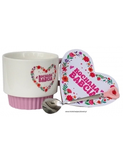 Kolorowy kubek ceramiczny z napisem "KOCHANA BABCIA", łyżeczka z uchwytem w kształcie serca oraz drewniana podkładka pod kubek to bardzo fajny zestaw na prezent dla babci.. Biało-różowy o ładnym kształcie kubek świetnie wygląda, więc będzie to dla babci stylowy i praktyczny prezent. Duże, poręczne ucho bardzo stabilnie i przyjemnie trzyma się w dłoni, co pozwala zafundować Babci wygodne delektowanie się napojem. Łyżeczka z końcówką uchwytu w kształcie serca oraz drewniana podkładka w kształcie serca uzupełniają ten zestaw. Herbata zaparzona w kubku dedykowanym Babci smakuje najlepiej.