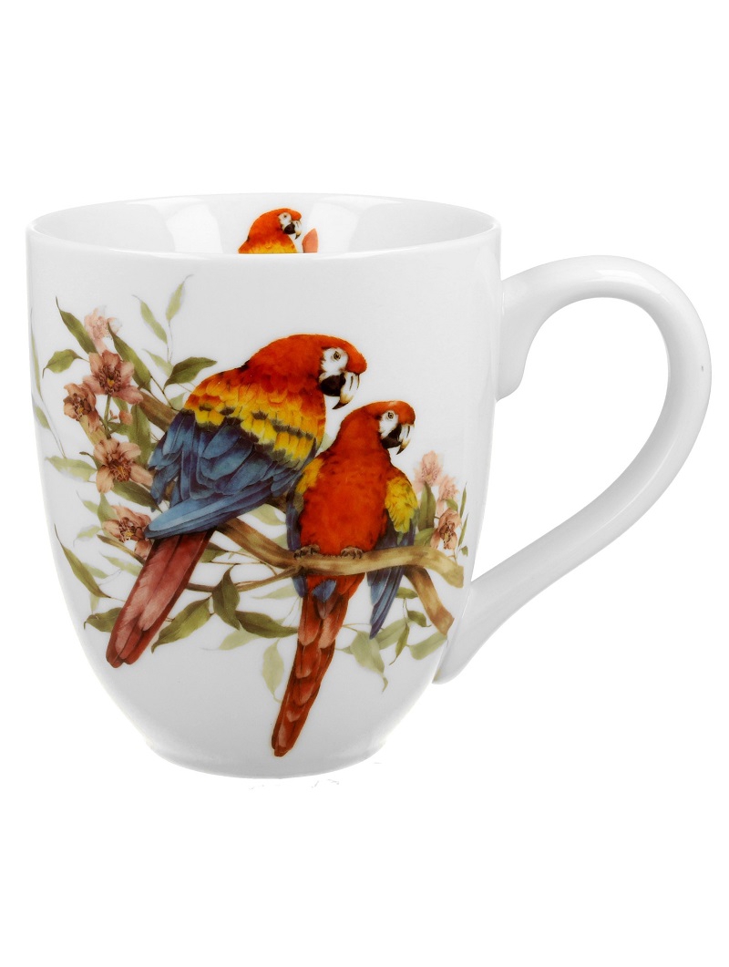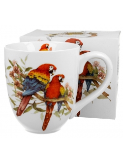 Kubek o niezwykle dużej pojemności z linii "ANIMALS" kolekcja PTAKI - PAPUGI - ARA SZKARŁATNA wykonany jest z porcelany New Bone China. Porcelana ta charakteryzuje się naturalnym kremowo-białym kolorem z delikatnym połyskiem oraz wyjątkową wytrzymałością i trwałością. Kubek dzięki dużej pojemności sprawdzi się zarówno do picia herbaty czy kawy ale również do podawania zup czy płatków śniadaniowych. Całość zapakowana jest w ozdobne pudełko dekorowane tym samym motywem co na kubku. Taki kubek to doskonały pomysł na niebanalny prezent urodzinowy i świąteczny, a także podarunek jako podziękowanie. Kubek będzie również ozdobą każdej kuchni. Kubek można myć w zmywarce oraz używać w mikrofalówce.