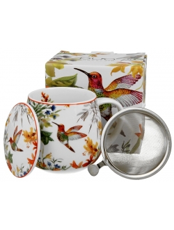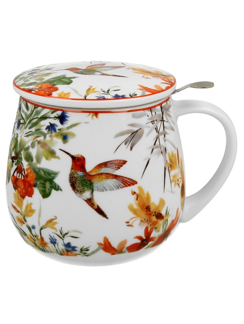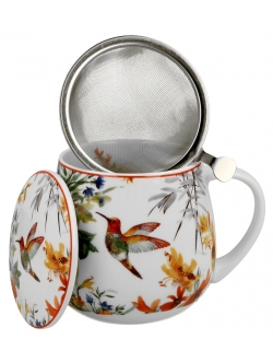 Kubek baryłka z zaparzaczem i pokrywką LINNEA -wchodzący w skład serii Flower Classic, wykonany z porcelany New Bone China, charakteryzującej się naturalnym kremowo-białym kolorem z delikatnym połyskiem oraz wyjątkową wytrzymałością i trwałością, zachowując lekkość i finezję. Linia zdobiona motywem malowanych kwiatów oraz uroczego kolibra. Doskonały zestaw do przyrządzania ulubionej herbaty i aromatycznych ziół. Całość zapakowana w ozdobne pudełko dekorowane tym samym motywem. Ten zestaw to doskonały pomysł na niebanalny prezent pod choinkę, urodzinowy, a także podarunek jako podziękowanie. Zestaw można myć w zmywarce lub używać w mikrofalówce.