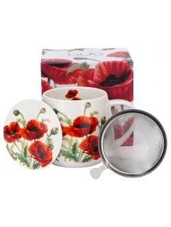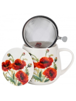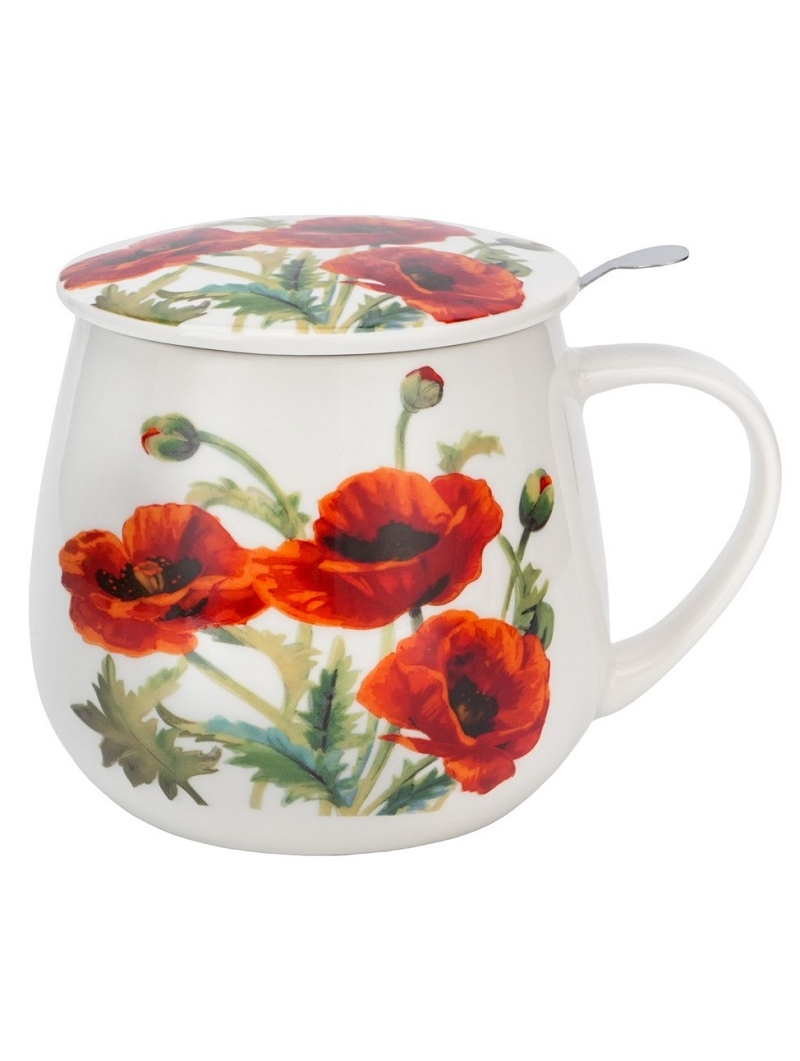 Kubek baryłka z zaparzaczem i pokrywką CLASSIC POPPIES -wchodzący w skład serii Kwiaty Classic, wykonany z porcelany New Bone China, charakteryzującej się naturalnym kremowo-białym kolorem z delikatnym połyskiem oraz wyjątkową wytrzymałością i trwałością, zachowując lekkość i finezję. Linia zdobiona motywem malowanych soczyście czerwonych polnych maków. Doskonały zestaw do przyrządzania ulubionej herbaty i aromatycznych ziół. Całość zapakowana w ozdobne pudełko dekorowane tym samym motywem. Ten zestaw to doskonały pomysł na niebanalny prezent pod choinkę, urodzinowy, a także podarunek jako podziękowanie. Zestaw można myć w zmywarce lub używać w mikrofalówce.