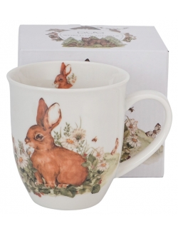 Kubek z serii "ANIMALS" kolekcja Świat Zwierząt - ZAJĄC wykonany jest z porcelany New Bone China. Porcelana ta charakteryzuje się naturalnym kremowo-białym kolorem z delikatnym połyskiem oraz wyjątkową wytrzymałością i trwałością. Kubek zdobiony motywem małego zajączka siedzącego otoczonego polnymi kwiatami. Całość zapakowana jest w ozdobne pudełko dekorowane tym samym motywem co na kubku. Taki kubek to doskonały pomysł na niebanalny prezent urodzinowy i świąteczny, a także podarunek jako podziękowanie. Kubek będzie również ozdobą każdej kuchni. Kubek można myć w zmywarce oraz używać w mikrofalówce.