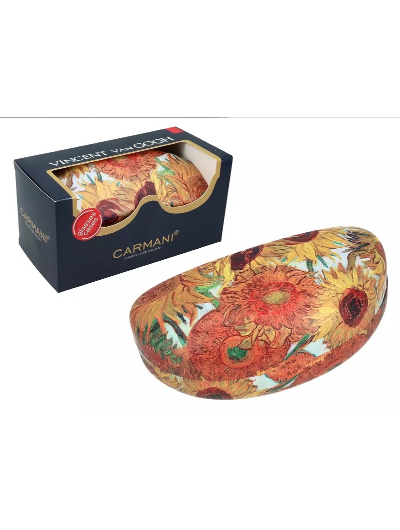 Ładne i duże etui na okulary, które doskonale ochroni je przed uszkodzeniami i zabrudzeniami, a jednocześnie może być doskonałym gadżetem dla miłośnika wyrobów firmy CARMANI. Całość zapakowana w ozdobne pudełko z tym samym motywem. Etui z kolekcji CARMANI malarstwo V. van Gogh'a "Słoneczniki".
