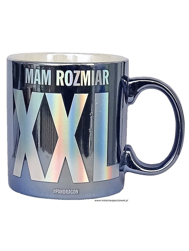 Duży kubek dla kogoś naprawdę wyjątkowego, czyli dla Ciebie! Ten duży kubek ze śmiesznym napisem, może być super prezentem dla każdego kto lubi mieć pod ręką dużo kawy czy herbaty. Duży rozmiar kubka to jeszcze więcej marzeń do spełnienia. Kubek w kolorze metalicznym niebieskim z srebrnym holograficznym napisem: "MAM ROZMIAR XXL". Kubek zapakowany w ładny kartonik. Kubka nie można myć w zmywarce i używać w mikrofali.