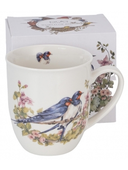Kubek 650ml wchodzący w skład kolekcji "Ptasi Świat" - JASKÓŁKI wykonany jest z porcelany New Bone China. Porcelana ta charakteryzuje się naturalnym kremowo-białym kolorem z delikatnym połyskiem oraz wyjątkową wytrzymałością i trwałością. Kubek zdobiony jest motywem jaskółek wśród kwiecisto liściastych gałązek. Całość zapakowana jest w ozdobne pudełko dekorowane tym samym motywem co na kubku. Taki kubek to doskonały pomysł na niebanalny prezent urodzinowy i świąteczny, a także podarunek jako podziękowanie. Kubek będzie również ozdobą każdej kuchni. Kubek można myć w zmywarce oraz używać w mikrofalówce.