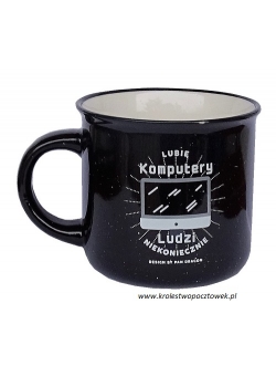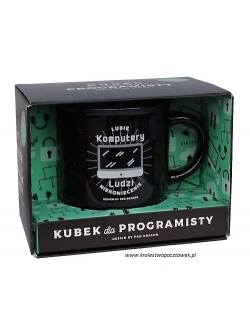 Uzależnienie od komputera jest w naszej epoce czymś na porządku dziennym i nie można się temu dziwić, gdyż za pomocą komputera można dzisiaj poznać świat i załatwić prawie wszystkie sprawy. Kup sobie lub znajomemu nasz wyjątkowy kubek HOBBY dla "PROGRAMISTY". Kubek o ładnym kształcie wykonany z ceramiki. Kubek z zewnątrz jest w kolorze czarnym w środku kremowym. Na kubku z obu stron znajduje się napis: "LUBIĘ KOMPUTERY - LUDZI NIEKONIECZNIE". Kubek zapakowany jest w ładny kartonik. W takim kubku kawa czy herbata przy komputerze będzie smakowała dużo lepiej.