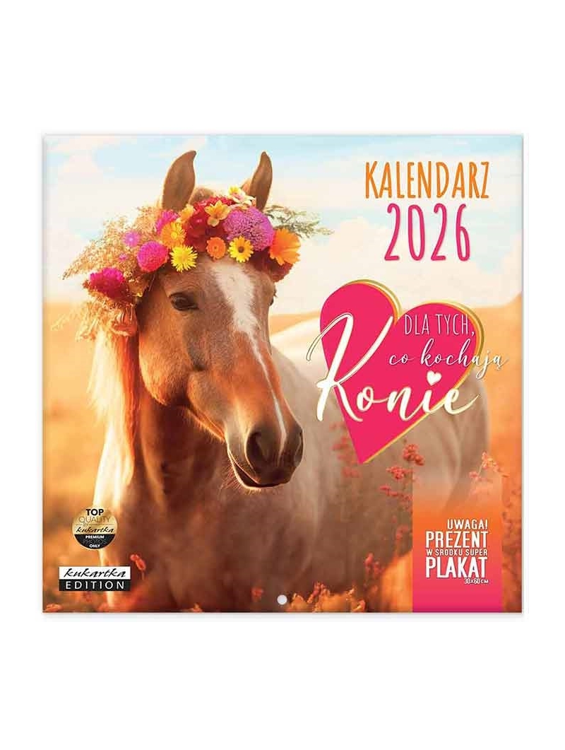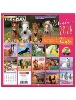 Pięknie ilustrowany kalendarz ścienny "DLA TYCH co kochają konie". Na każdy miesiąc jest ładne zdjęcie z napisaną sentencją. W kalendarzu są zaznaczone święta oraz imieniny. Do kalendarza dołączony jest prezent w postaci plakatu o wymiarach 30,0cmx60,0cm.