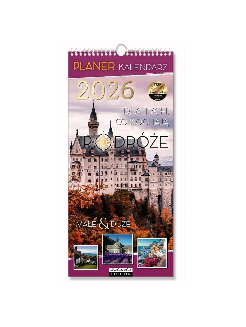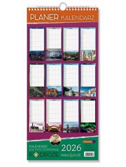 Pięknie ilustrowany kalendarz - planer ścienny "DLA TYCH CO KOCHAJĄ PODRÓŻE MAŁE & DUŻE". Na każdy miesiąc jest ładne zdjęcie ciekawego miejsca na świecie. Ten kalendarz może być ładnym prezentem na każdą okazję.