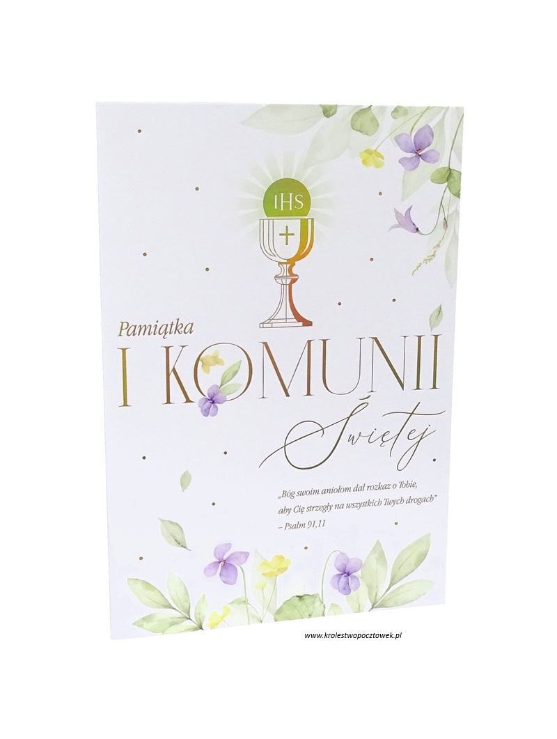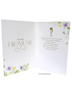 Pierwsza Komunia Święta to niezwykle ważne wydarzenie w życiu młodego chrześcijanina. Nasz karnet może być miłą pamiątką z tej okazji. W komplecie biało - perłowa koperta.