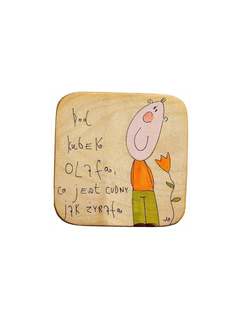 Oryginalna, ręcznie wykonana podkładka pod kubek. Idealna rzecz na prezent na różne okazje. Podkładki wykonane są z cienkiej sklejki podklejonej od spodu korkiem. Z wierzchu jest ręcznie namalowany śmieszny rysunek i napis. Całość zabezpieczona poprzez lakierowanie. Rysunek na otrzymanej podkładce może nieznacznie różnić się od tego widocznego na zdjęciu (podkładki są ręcznie malowane i przez to niepowtarzalne).