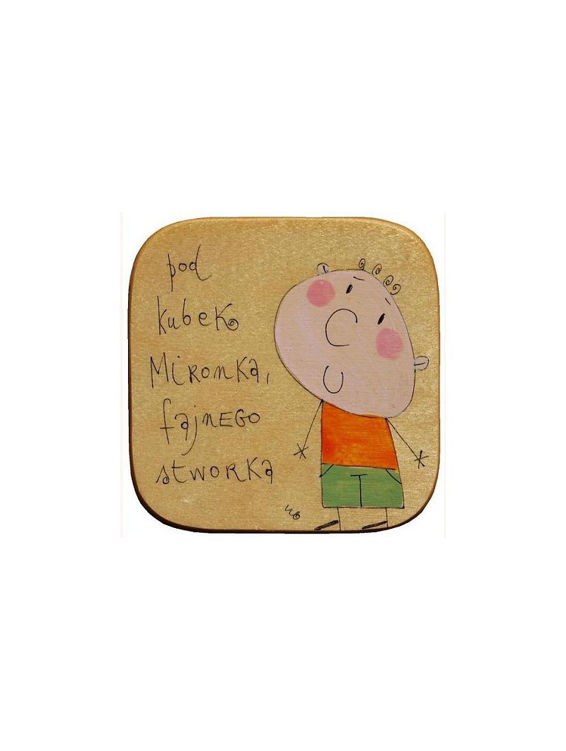 Oryginalna, ręcznie wykonana podkładka pod kubek. Idealna rzecz na prezent na różne okazje. Podkładki wykonane są z cienkiej sklejki podklejonej od spodu korkiem. Z wierzchu jest ręcznie namalowany śmieszny rysunek i napis. Całość zabezpieczona poprzez lakierowanie. Rysunek na otrzymanej podkładce może nieznacznie różnić się od tego widocznego na zdjęciu (podkładki są ręcznie malowane i przez to niepowtarzalne).