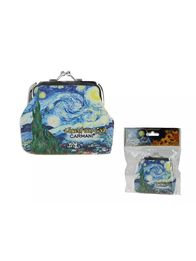 Jeśli szukasz portmonetki w której mieszczą monety i banknoty - ta będzie odpowiednia. Można ją także wykorzystać do dyskretnego przechowywania damskich skarbów. Portmonetka z kolekcji CARMANI ozdobiona jest motywem z obrazu "Gwiaździsta NOC" V.Van Gogh'a. Portmonetka zamykana jest na bigiel. Portmonetka zapakowana jest w ładne prezentowe pudełko. Taka portmonetka przyda się każdej kobiecie lubiącej małe torebeczki.