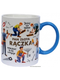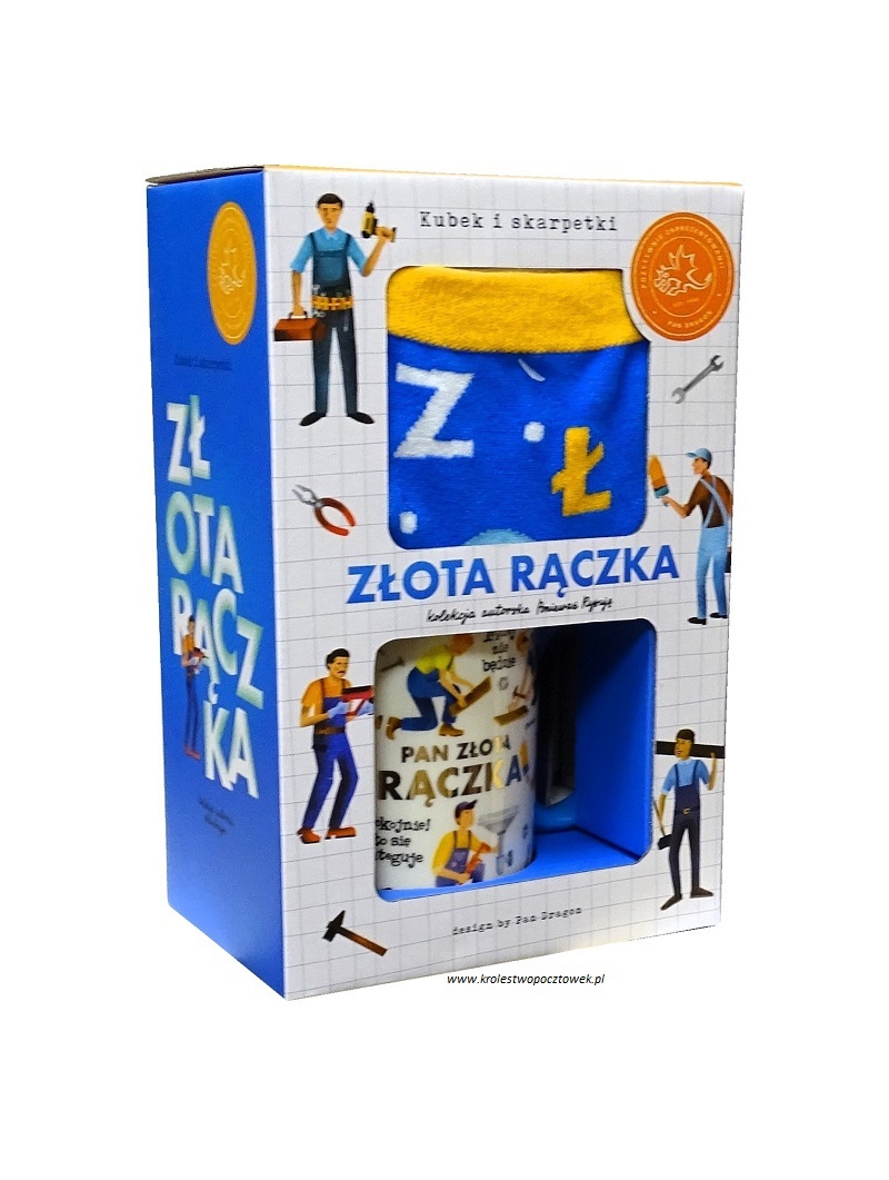 Dla najlepszego majsterkowicz - ZŁOTEJ RĄCZKI z najlepszymi życzeniami wyjątkowy zestaw - ciepłe skarpetki i kubek na pyszną herbatkę. Kubek wykonany z białej ceramiki. Na kubku namalowane są śmieszne rysunki oraz napisy. Skarpetki w kolorze niebieskim z napisem ZŁOTA RĄCZKA. Ściągacze, pięty i palce są w kolorze pomarańczowym.Całość zapakowana jest w ładny kartonik i będzie fajnym prezentem na każdą okazję.