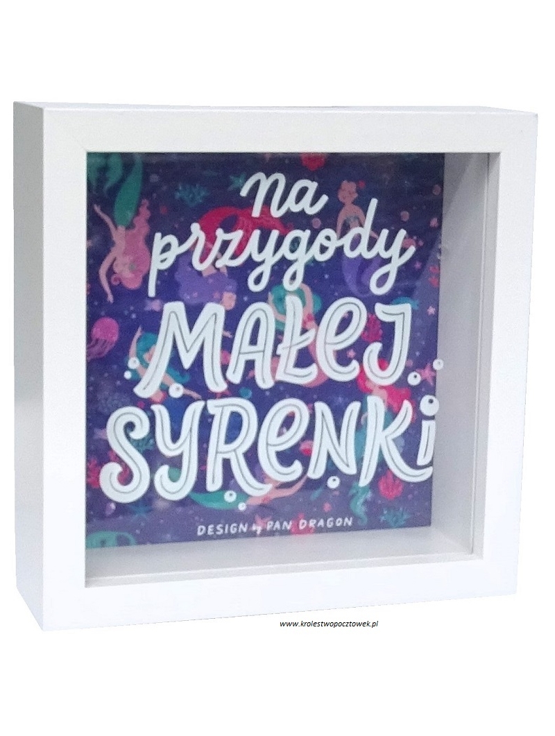 Najlepszy prezent dla dziecka to skarbonka z przesłaniem na jaki cel zbiera pieniądze. Skarbonka w kształcie prostopadłościanu wykonana jest z pomalowanej na niebiesko płyty mdf. Jedna ze ścianek skarbonki zrobiona jest ze szkła i widać stopień zapełnienia skarbonki. Tylna ścianka skarbonki jest otwierana dlatego po wypełnieniu jej możemy spokojnie wyjąć wszystkie uzbierane pieniądze nie niszcząc skarbonki i zacząć zbierać na nowe marzenie. Skarbonkę można postawić lub powiesić na ścianie. Kup sobie lub na prezent dla dziecka taką skarbonkę i zachęć je do oszczędzania na małe i duże przyjemności. Na skarbonce znajduje się napis - "na przygody MAŁEJ SYRENKI".