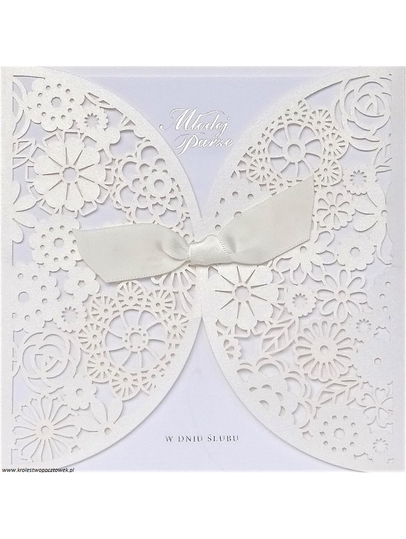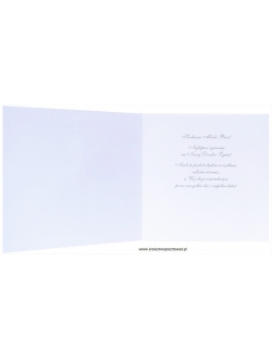 W Dniu Ślubu warto podarować nowożeńcom szczególną pamiątkę. Elegancki karnet, który proponujemy pomoże pamiętać im każdego dnia o miłości, którą przyrzekli sobie w tym szczególnym Dniu. Ozdobnie laserowo wycięty i składany karnet wykonany jest z papieru w kolorze perłowo białym. W środku napisane są życzenia.