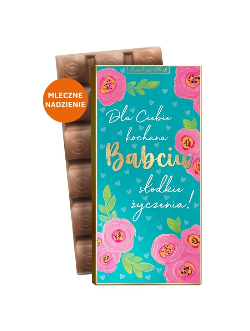 Czekolada to zawsze trafiony prezent dla "Kochanej Babci". To słodycz, której Babcia się nie oprze. Bo kto nie lubi czekolady? Dlatego właśnie będzie to idealny prezent dla każdej Babci, bez wyjątku. Podaruj BABCI słodycz zamkniętą w niebanalnym opakowaniu. Wybierz czekoladę, która jest zdecydowanie wyjątkowym upominkiem nie tylko na "Dzień Babci". Czekolada mleczna z mlecznym nadzieniem,