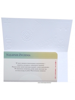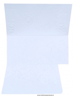 Etui na pieniądze w formie ozdobnej koperty z nadrukowanym napisem - "WYJĄTKOWE SUPER ŻYCZENIA"". Etui wykonane jest z ładnego papieru w kolorze białym. W środku wycięte są półokrągłe uchwyty na banknoty oraz napisane są życzenia.